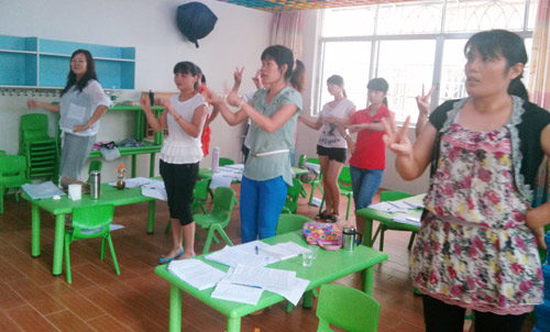 2013年08月13-15日,易道總部楊楠老師和薛梅潔老師赴廣西龍川部落進行手腦速算和手腦識字與閱讀的公開課展示以及兩項課程的師資培訓。