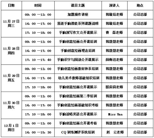 通知:易道教育將于11月27日進行精品課程師資培訓