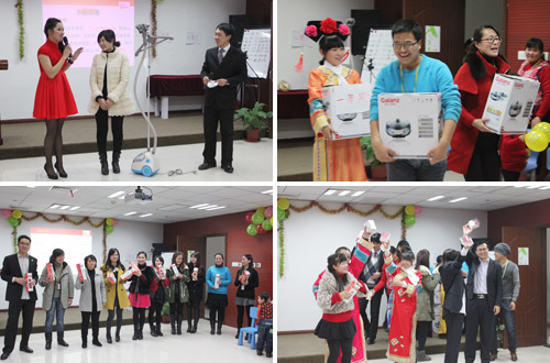 開場神曲《What’s the fox say》配上勁爆舞蹈,引動現場頻頻尖叫。隨后歌曲、舞蹈、小品、話劇……輪番登場,精彩不斷,掌聲不斷,笑料不斷。期間穿插著好玩的,考驗團隊協作能力的趣味游戲,更有激動人心的抽獎環節,用快樂與驚喜演繹成的新年舞曲在易道總部翩躚躍動。