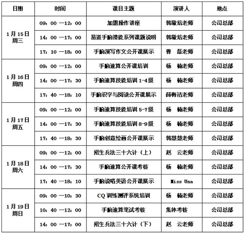 通知:易道精品課程將于01月15日進(jìn)行新年首期師資培訓(xùn)