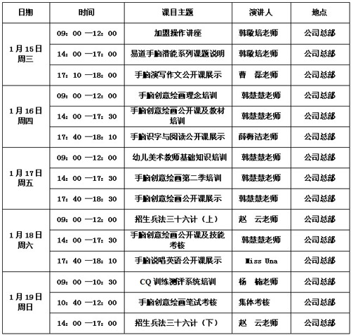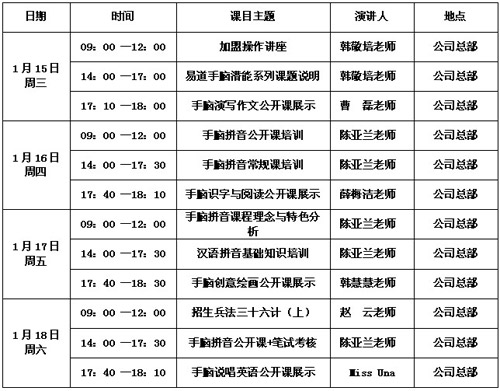 本次易道教育師資培訓(xùn)課表如下: