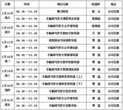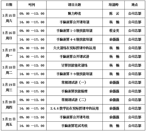 師資特訓班培訓·手腦思維數(shù)學課程表: