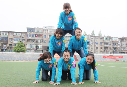 “贏在團隊·和諧易道”野外拓展訓練第一項:“陸地飛龍舟”大腳板