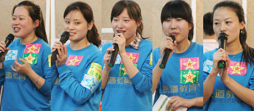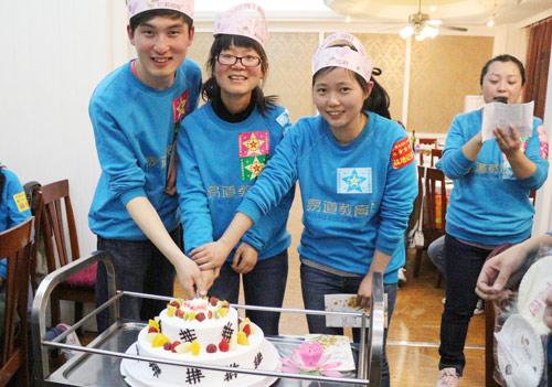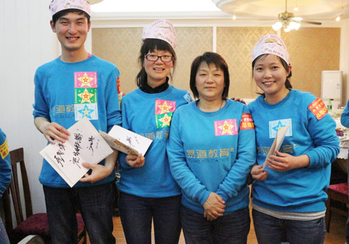 在進(jìn)行了一上午的拓展項(xiàng)目后,易道所有員工圍坐在草坪上開始本月例會的第一項(xiàng),三月份優(yōu)秀員工的選舉,各部門候選人都進(jìn)行了動情的拉票演說后,全體老師參與投票,最終旗艦學(xué)校李紅老師以最高票數(shù)獲得2014年度三月份優(yōu)秀員工的榮譽(yù),祝賀李老師,也把熱烈的掌聲送給各部門的候選人,你們是易道的精英,易道的驕傲。新員工的自我介紹則是在晚宴時(shí)進(jìn)行的,易道需要新生的力量,易道歡迎您的加入。隨后大家一邊欣賞著文工團(tuán)精心準(zhǔn)備的節(jié)目,一邊吃著可口的晚餐,笑聲連連,訓(xùn)練以后的疲憊也不見了。最后一項(xiàng)是易道的傳統(tǒng),給四月份過生日的老師送上最真誠的祝福,讓您擁有一個難忘的回憶,在祝福的歌聲中,例會也接近了尾聲。