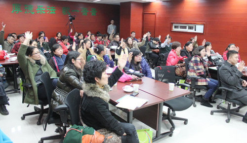 下午三點之前,小朋友們隨著家長陸續(xù)來到會館內,CQ家長訓練營在三點準時開始,小朋友們和家長們同時進行學習。小朋友們被分批領進教室開始進行專注力測評,并由測評老師即時寫出測評結果,家長們則在會議室里認真聽易道旗艦學校校長趙云老師帶來的《專注力——提高學習能力的金鑰匙》專題講座。會前更有有獎互動環(huán)節(jié),微信搖一搖,被趙云老師手機搖到的前三位可以獲得超萌超Q的小易或者小道布絨公仔一個,更可以零距離無門檻的與趙老師交流,在以后的家庭教育中,有任何疑問都可以與趙老師溝通哦!