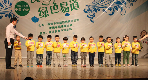 2013年10月27日,來自全國各地的近四百位小選手齊聚安徽合肥長江劇院,共同參加了第五屆中國手腦速算大賽暨“美麗中國·綠色易道”童樂會(huì)。一年一度的兒童教育界的盛事由中國手腦潛能教育研究院、中國手腦速算協(xié)會(huì)主辦,由易道教育中國總部承辦。
