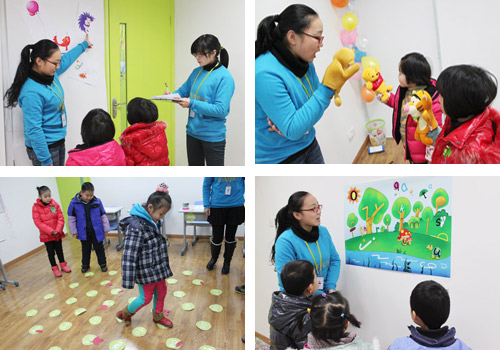 在童苑的各個(gè)教室里,老師們通過(guò)兒歌、游戲、猜謎、手腦操等方式測(cè)評(píng)小朋友們的思維能力、想象能力、觀察能力、表達(dá)能力等等,讓家長(zhǎng)了解自己孩子在這一年里的進(jìn)步。在趣味的互動(dòng)中,孩子們玩的開(kāi)心,也展現(xiàn)了自己的各項(xiàng)能力,一陣陣歡聲笑語(yǔ)從童苑傳出,在易道整個(gè)樓層中慢慢回蕩。
