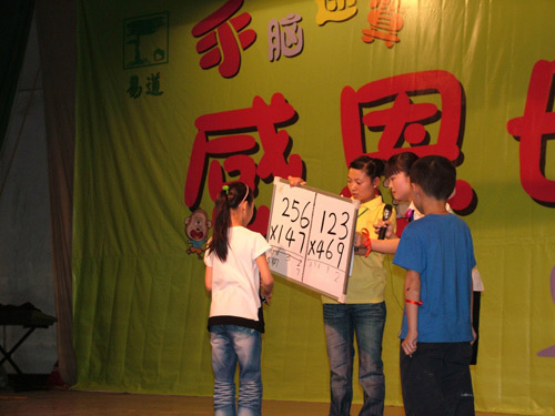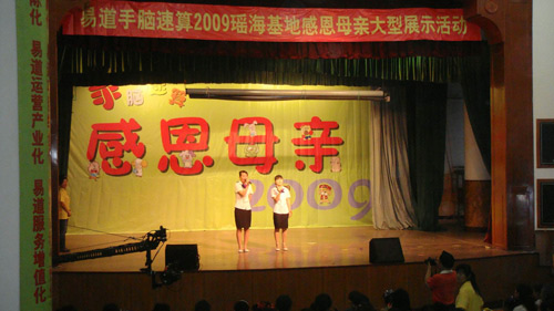 伴隨著一年一度的母親節的到來,易道中國在5月9日上午成功舉辦了“易道手腦速算2009瑤海區基地感恩母親大型展示活動”。