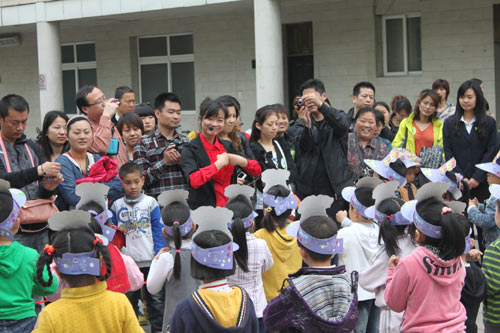 神秘嘉賓“小易”“小道”現身易道寶貝生日會,引起孩子圍觀
