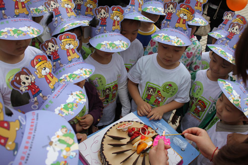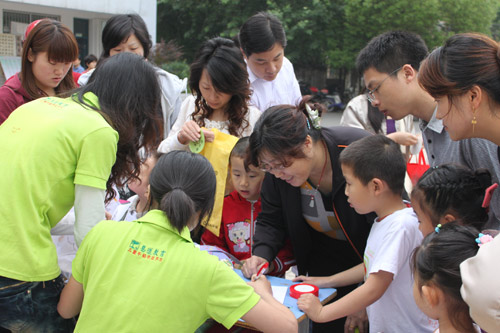 2012年5月20日上午,合肥包河區青少年活動中心的廣場上熱鬧非凡。為慶祝五月份易道教育手腦速算寶貝的生日,易道總部的老師們在包河區舉行第三期大型生日主題活動,“許一個愛的愿望·祝你生日快樂”。