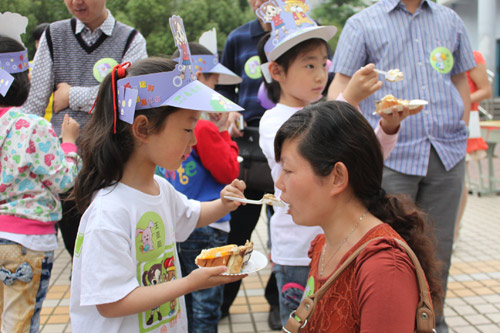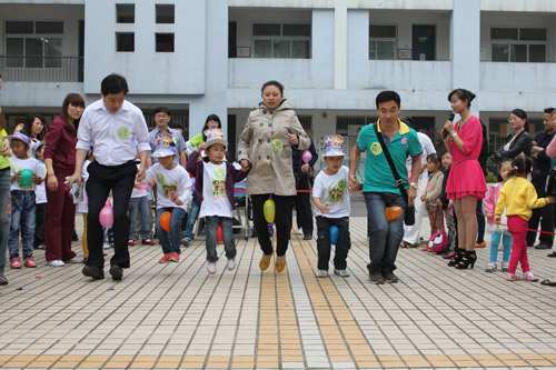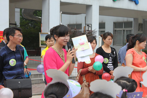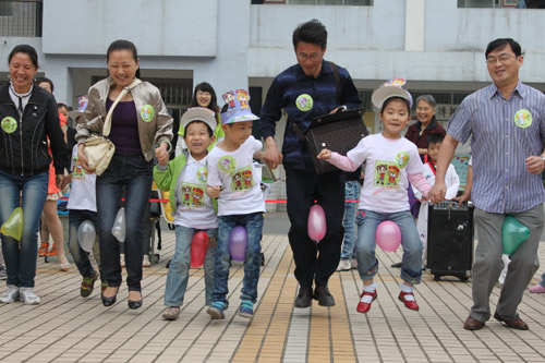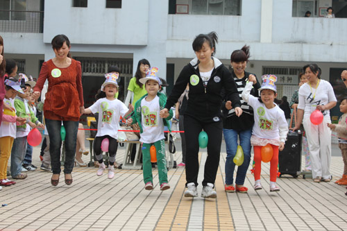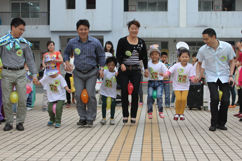 你看,孩子們玩得多開心呀!家長們在孩子的帶領下,紛紛參加親子互動游戲,廣場上時時飛出快樂的笑聲。袋鼠游戲、兔子舞、心形卡祝福,還有甜蜜的蛋糕分享,“爸爸媽媽,我愛你!”