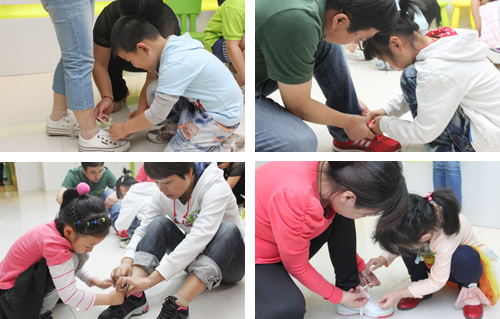快樂與健康是童年里最重要的兩件事。父母送寶貝們以健康,易道送寶貝們以快樂,健康的成長,快樂的學習。會館內,老師倡議孩子們學會自己系鞋帶,給父母系一次鞋帶,感謝他們的付出,告訴他們:“我們正在茁壯成長,我們也可以照顧你們哦!”