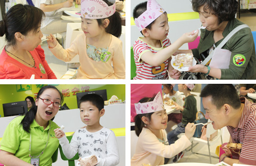美味的生日蛋糕推上來了,許完心愿后,每一位小朋友將分到的第一口蛋糕喂給了自己的爸爸媽媽吃,他們笑了,小朋友笑了,老師們看到后也笑了!