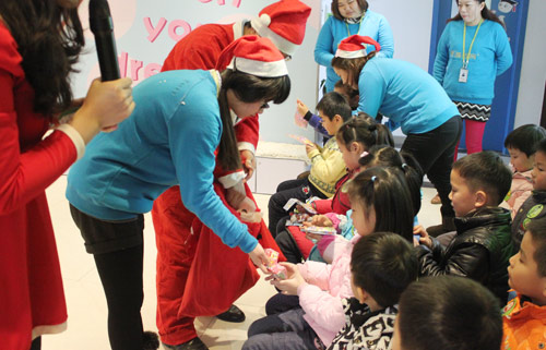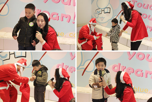 主持人薛梅潔老師采訪了每一位小朋友的圣誕愿望,“我要成為軍人!”,“我要送給爸爸一輛敞篷車!”,“我想要當科學家!”……有志不在年高,小小孩童就有如此志向,應是老師的欣慰和國家的希望。隨后寶貝們與各自的家長玩起了親子互動游戲《接力圣誕球》,由家長與孩子共同接力進行,每組勝出的小朋友還能獲得圣誕老人的精品禮物呢!