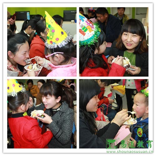 最后,小易小道推著蛋糕出現,將活動推向了高潮,在《祝你生日快樂》的歌聲中,寶寶們都許下了自己的心愿。寶寶們將得到的蛋糕和家長一起分享,讓童苑里充滿了愛的暖流!