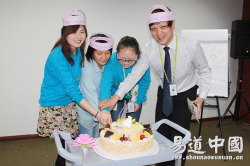 例會首先是新員工站在臺上作自我介紹,每一滴新血液的加入就代表著易道又強大了一些,易道歡迎您;隨后是四月份優秀員工的選舉,在各部門推選出來的候選名單中選出兩位最優秀的老師,全員參與,一票定結果,最后由人力資源部楊坤老師獲得四月份優秀員工的稱號,向榜樣致敬;緊接著各部門分組玩起了《你說我做——記憶力大PK》,兩人一組,一人記憶,另一人按照記憶之人傳遞的信息去完成內容,看小伙伴們搶奪道具,左右難分,笑料百出,真正是娛樂了別人,辛苦了自己,一路比拼,最終由巴布嚕事業部小組獲得勝利,人力資源部貼心的為冠軍小組準備了精美禮品;前進的路上一路拾取、放棄,留到最后的都是我們最親密的戰友,總經辦祝老師、季老師在點評中用他們智慧的言語,豐富的閱歷為所有老師上了一堂人生之課,能悟多少,且看個人境界;最后是為五月份過生日的老師舉辦集體生日會,祝福、賀卡、燭光、蛋糕,瞬間讓氛圍蒙上了蜜一樣的芬香,分享美味,分享快樂,分享彼此五月里的酸甜苦辣。