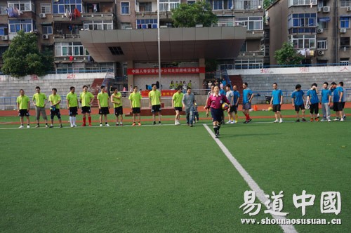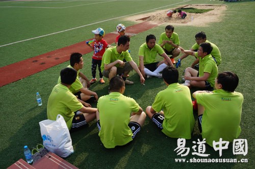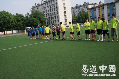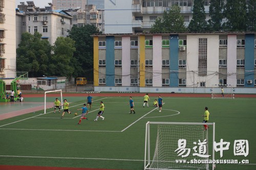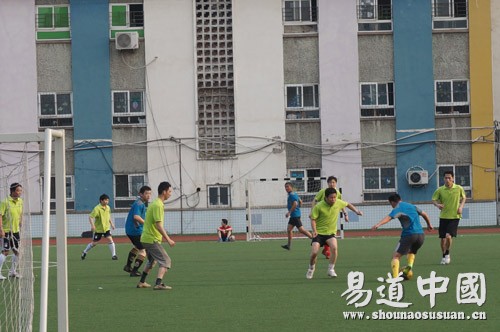 場上兩隊隊員你追我趕,場下觀眾的吶喊聲也一直不斷,更有易道美女啦啦隊火辣助陣。經過兩個小時的激烈角逐,兩隊最終以3:3打成平局。