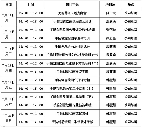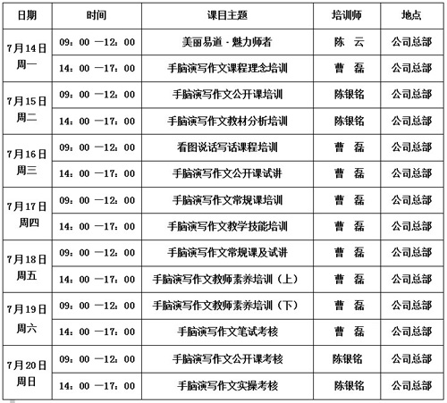 師資特訓班培訓·手腦識字與閱讀課程表: