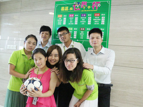 隨之而來的“易道與世界干杯”——2014世界杯競猜的謎底也已揭曉,一個月前載著對德國隊奪冠的堅定信念的那一紙選票最終讓易道教育總部“祝媽媽”、趙云老師、季燕老師、張紹輝老師、韓麗娟、魯曉璐、孫頔、于慧敏、李雪峰、尚娥梅、孫誠、陳亞蘭等十二位老師獲得“神預測”稱號,人力資源部也為以上每一位老師準備了貼心禮品。重在參與的游戲,精彩在于所有人都能分享他們的喜悅。