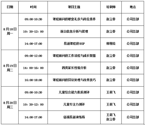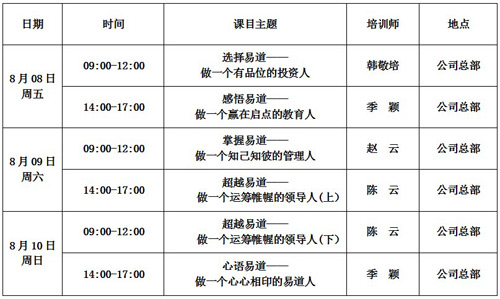 本期易道教育精英速成班培訓(xùn)流程安排如下: