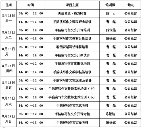 師資特訓(xùn)班培訓(xùn)·手腦演寫(xiě)作文課程表: