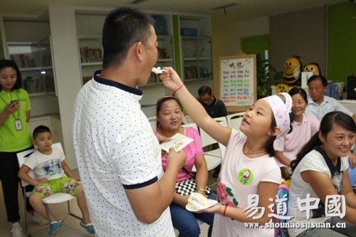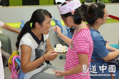 小易和小道將蛋糕推出來時(shí),寶貝們眼神中透出的是驚喜,是快樂!寶貝們一起許下生日愿望,吹滅蠟燭,生日會的氛圍也達(dá)到了高潮。每一位寶貝拿到蛋糕后的第一口都喂給自己的爸爸媽媽吃,這是對爸爸媽媽的愛的小小回饋。爸爸媽媽臉上甜蜜的笑容讓會館的每個(gè)角落都充滿了幸福的氣息。