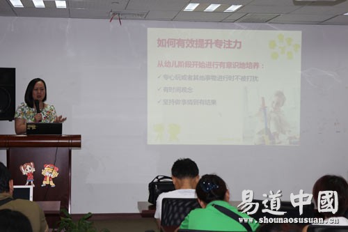 訓(xùn)練營正式開始后,寶貝聽從老師的安排,有序的參加了專注力的測試。而家長則在會議室里聽取中國手腦潛能研究院研究員、資深兒童教育專家、易道旗艦學(xué)校校長趙云老師帶來的《專注力——提高孩子學(xué)習(xí)能力的金鑰匙》的專題講座。