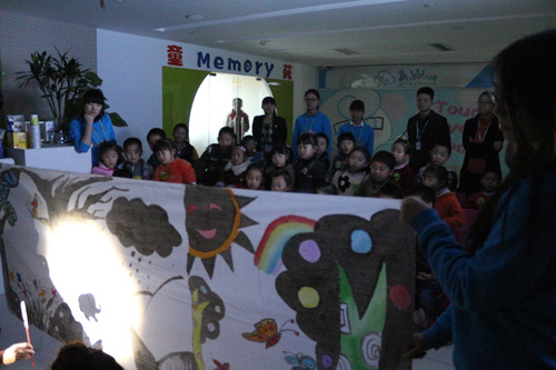活動一開始,凌筱老師就請出了寶貝們特別喜愛的小易小道,小易小道的出現(xiàn),使得小朋友們的熱情瞬間高漲。不管是和巴布嚕的老師一起學習吃蛋糕的禮儀,還是欣賞巴布嚕老師帶來的皮影戲,小朋友們都很投入。
