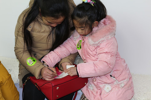手腦操結束后,小朋友們和家長就玩起了“愛的抱抱”,彼此不熟悉的小朋友開始熟悉了,小朋友和家長的愛也在擁抱中盡情展現。游戲過后,小朋友們在家長的幫助下,給未來的自己寫了一張圣誕明信片,并貼上郵票,投入信箱,明年的這個時候小朋友們就能收到這張明信片了,看看到時的你是否還記得今天寫下的夢想或祝福。