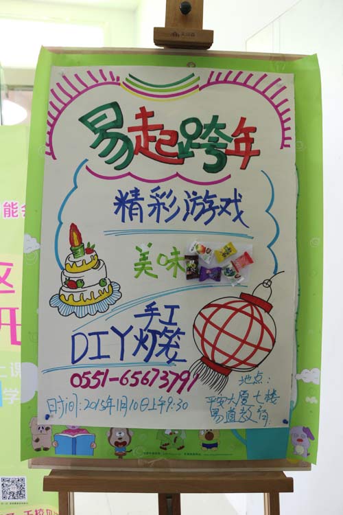 2015年1月10日上午9:30,易道教育·百花井校區邀請了一群可愛的寶貝們在新歲交替之際,舉行了“易起跨年”大聯歡,不僅有好玩的親子互動游戲,而且寶貝們還親手制作了五顏六色的燈籠,向即將到來的羊年送上一份禮物。