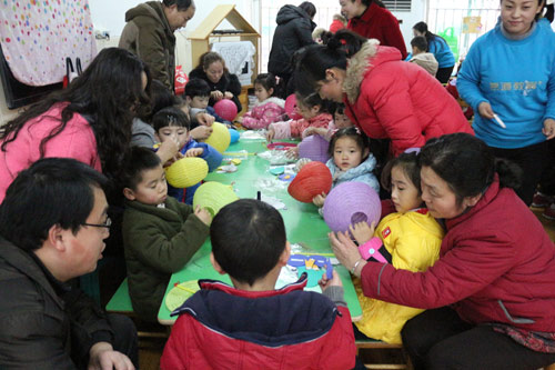 2015年1月27日下午,易道教育的老師們攜手宿州路幼兒園大三大四班的小朋友和家長(zhǎng)們一起手繪DIY燈籠,快樂(lè)迎新年。