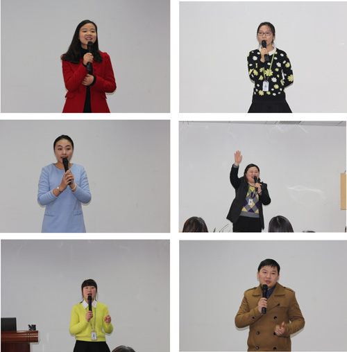 每個老師通過抽簽后按照順序上臺進行演練,銅牌老師及未授牌老師需要通過風采展示、家長課堂主題演講、手腦潛能系列課程介紹三個部分的考核;教務招生組的老師需要通過手腦潛能系列課程與教師介紹、常規(guī)問題論述、風采展示三個部分的考核。