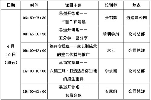 招生技巧班培訓課程表: