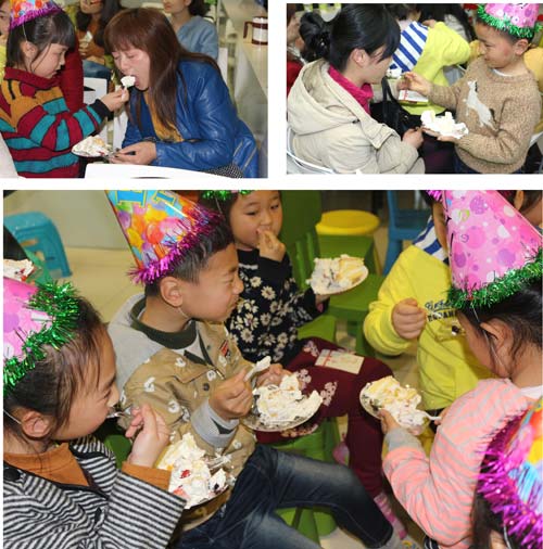 歡快的手腦操讓現場的氣氛慢慢的活躍起來了,而小易小道的出現更是點燃了小朋友們的熱情。戴上生日帽,輕輕的閉上眼睛,許下生日愿望,和爸爸媽媽一起分享美味的蛋糕,讓甜蜜和愛永駐心間。