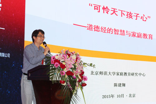 2015年10月25日下午,在2015易道教育集團(tuán)全國(guó)校長(zhǎng)年會(huì)暨“十年·十翼”紀(jì)念峰會(huì)的現(xiàn)場(chǎng),北京師范大學(xué)教育學(xué)部教授、教育學(xué)博士、家庭教育研究中心主任、家庭教育專業(yè)碩士研究生導(dǎo)師、中國(guó)教育學(xué)會(huì)家庭教育專業(yè)委員會(huì)常務(wù)理事、《中國(guó)教育報(bào)》家庭教育問題顧問、中央電視臺(tái)“百家講壇”節(jié)目特邀專家、“新家庭教育”倡導(dǎo)者陳建翔教授為我們帶來一場(chǎng)關(guān)于孩子、關(guān)于家庭、關(guān)于教育的精彩講座——《可憐天下孩子心——道德經(jīng)的智慧與家庭教育》。