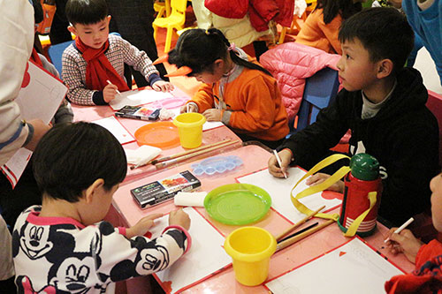 一到現(xiàn)場就是簽到抽獎(jiǎng)環(huán)節(jié),每組家庭都會(huì)獲得一份簽到禮,現(xiàn)金紅包、課程抵用券,并還贈(zèng)送充滿年味的中國紅圍巾一條?,F(xiàn)場熱鬧非凡,有猜燈謎、剪窗花、做燈籠、做元宵、畫蠟畫、科學(xué)小實(shí)驗(yàn)等多種豐富多彩的趣味活動(dòng)環(huán)節(jié),猜中燈謎還有精美禮品兌換,家長和寶貝們都踴躍參與開動(dòng)腦筋奇思妙想!