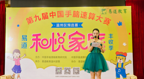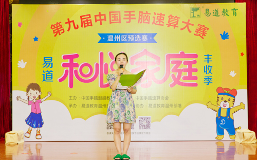 2017年6月11日,第九屆中國手腦速算大賽暨易道“和悅家庭”豐收季溫州賽區預選賽于溫州市鹿城區新南亞大酒店正式拉開帷幕。易道教育集團加盟運營事業群南部大區總監倪進琴女士前往比賽現場給予工作指導與支持。