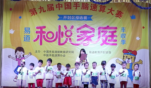 本次大賽主要由中國手腦潛能教育研究院、中國手腦速算協會主辦,由易道教育開封部落承辦。前來參賽的小朋友主要是來自開封、滎陽、蘭考、杞縣等易道教育部落,賽場井然有序,整場比賽順利進行。