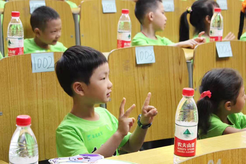 四川得益于水之滋潤,霧之浸潤,帶著一種溫潤閑適的氣質,人杰地靈,鐘靈毓秀之地,人才輩出,而這個六月,由易道寶貝為四川增添別樣的風采。 臺上小朋友手腦并用,激烈角逐大展身手的同時,臺下的小朋友也不閑著,跟著臺上的小朋友一起伸出小手,快速運算!