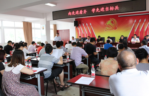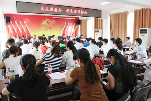 臺上易道教育黨支部書記、易道教育集團企業發展中心總監韓敬培同志對易道教育集團黨支部工作做總結匯報,發言中韓敬培同志表示:易道教育黨建工作的開展積極圍繞“兩個覆蓋”和“兩個作用”,深入開展“兩學一做”學習,做好三大服務,并對支部黨建標準化建設和支部未來工作方向做簡單介紹,只有嚴格要求自身黨建工作,才能推進黨的更好、更快發展。