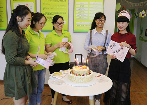 例會的最后依舊是為本月的過生日的老師送賀卡、切生日蛋糕、送祝福,易道的溫情因為蛋糕甜蜜,也因為祝福變的溫暖,祝老師們九月生日快樂!
