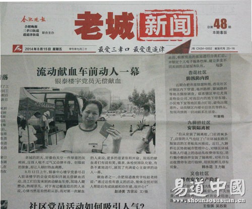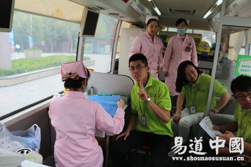 無償獻血是無私奉獻、救死扶傷的崇高行為,也是我國血液事業發展的總方向。2014年8月12日上午合肥易道教育文化有限公司員工在旗艦校校長趙云老師帶領下早早的來到銀泰中心前的流動獻血處,等待獻血。