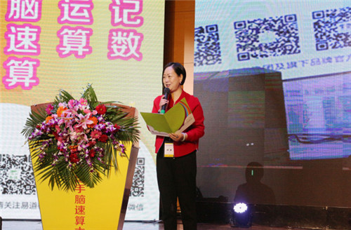 中國手腦潛能教育研究院研究員、易道教育集團副總經理、旗艦學校事業群校長趙云女士在開幕式上致辭。趙云女士在致辭時說,一年一度,年華似錦。中國手腦速算大賽不僅展現了手腦速算學員的學習效果,更為孩子們提供了一個展示自我風采的平臺。孩子、老師、家長,在尊重中實現默契配合,在互動中打造教育合力。“和悅家庭”翻開孩子未來生活新篇章,讓孩子體驗別樣的童年,享受合作帶來的成功喜悅。這將是一場別開生面的教育盛會,也將是一場緊張激烈的夢想角逐。