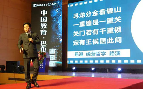 中國教育“創(chuàng)業(yè)·贏業(yè)”路演峰會精彩仍在繼續(xù)。下面是易道教育集團常務(wù)副總經(jīng)理、副校監(jiān)季永剛先生為大家?guī)韺n}講座《創(chuàng)業(yè)·贏業(yè) 易道經(jīng)營哲學(xué)路演》