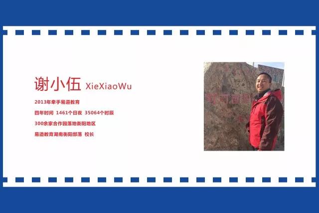 他今生逆旅天涯、四海為家,卻立誓為教育傾盡天下。四年,1461個日夜,35064個時辰。300余家合作園落地衡陽。為民辦幼兒園,他依舊行走在路上。他就是,易道教育湖南衡陽部落校長謝小伍。