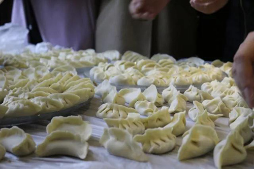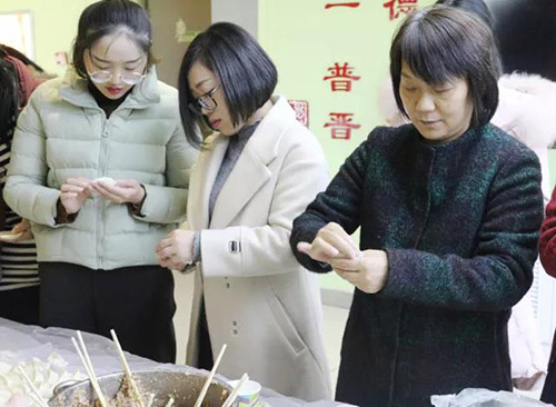 然后,就是全體老師包餃子啦!精心準(zhǔn)備好的餃子餡,還有可愛的領(lǐng)導(dǎo)們?yōu)槔蠋焸儨?zhǔn)備的美味菜肴,羊肉、糖醋排骨、魚、蝦、冬筍燒肉.......“咕嚕”看著老師們直流口水。“開吃”,一聲令下,不到一分鐘的時(shí)間,小編真的親眼看到有的盤子里只剩下骨頭,凄慘的躺在那里。