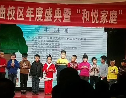 盛典開場致辭結束,個個身懷才藝的孩子們迅速占領了舞臺。詩歌朗誦、舞蹈、歌曲,節目精彩紛呈,觀看節目的家長、小朋友們更是目不轉睛、一心一意看節目。