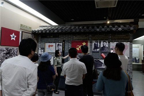 在整個(gè)參觀過(guò)程中,黨員們不時(shí)被一件件珍貴的文物、一個(gè)個(gè)精彩的故事所吸引、所感染。 在《八月桂花遍地開(kāi)》的場(chǎng)景前,講解員不僅介紹這首膾炙人口、唱響全國(guó)的金寨民歌,還即興演唱了一段,贏得了大家一片掌聲。