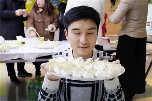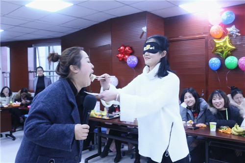 玩鬧過(guò)后,胃早已空空?!冻燥溩印酚螒騽t是滿足了在場(chǎng)眾人的口腹之欲。選12個(gè)人按部門分為6個(gè)小組。一名選手蒙眼,端著餃子走到指定地點(diǎn),另一個(gè)小伙伴在終點(diǎn)指揮,在五分鐘內(nèi)吃餃子數(shù)最多的小組獲得最終的勝利。