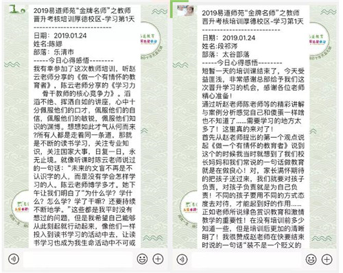 眾位老師在2019易道師苑“金牌名師”教師晉升考核培訓的學習中,收獲滿滿,受益良多。不少老師都分享了自己的學習心得,大家互相交流,共同成長。